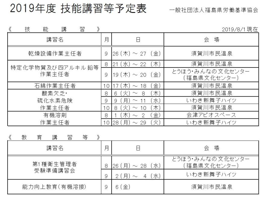 技能講習・その他の教育の申込方法についてWebでの申込を開始しました。(24時間受付です)詳しくは建災防福島支部開催の講習会(申込)は、下記ホームページでご確認下さい。 講習会(申込) お問い合わせ先