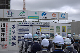 【工事現場の関係者を激励】