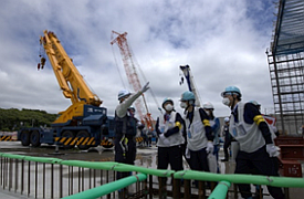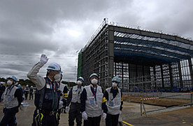 2 福島労働局長が建設現場の安全パトロールを実施福島労働局の井口真嘉局長は、全国安全週間(7月1日~7日)の準備期間(6月1日~30日)である6月3日、建災防福島県支部 泉田理事兼双葉分会長、齋藤事務局長、富岡労働基準監督署長とともに、東京電力福島第一原子力発電所内の建設現場の安全パトロールを実施しました。工事名: 1F―固体廃棄物貯蔵庫第10棟建屋設置工事(第2期工事) 施工者: 1F―固体廃棄物貯蔵庫第10棟2期工事共同企業体 【構成】 大成建設(株)、(株)中里工務店、横山建設(株)、クレハ建設(株)、常磐開発(株)、福浜大一建設(株) パトロールでは、建設業で最も発生件数が多い墜落・転落災害及び建設機械・動力運搬機械による挟まれ・巻き込まれ災害に対する防止対策のほか、熱中症予防対策の実施状況などを確認し、作業者に直接、労働災害防止の呼びかけを行いました。 【現場パトロールの様子】